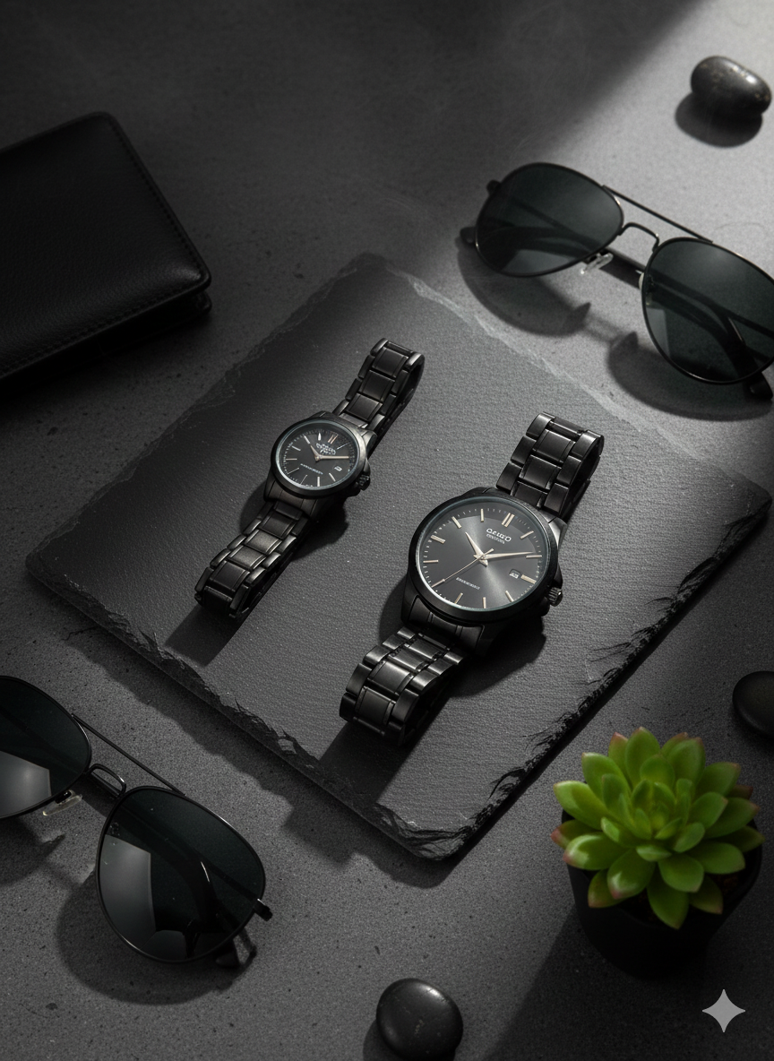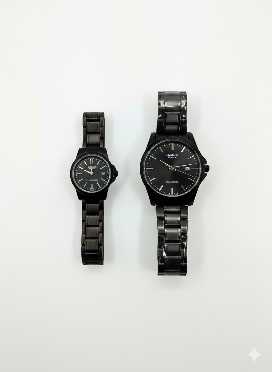 ساعت ست تمام مشکی کاسیو انتخابی جسورانه برای زوج‌های جسور و خوش استایل.