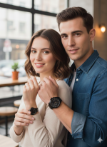 یک انتخاب خاص و جسورانه برای زوج‌هایی است که به استایل یکدست و مدرن علاقه دارند. طراحی مینیمال و رنگ تمام مشکی، جلوه‌ای شیک و امروزی به این ست بخشیده و آن را به گزینه‌ای ایده‌آل برای استفاده روزمره و استایل‌های اسپرت و شهری تبدیل کرده است. بند فلزی مشکی، صفحه‌ی گرد با اعدادی مینیمال این ساعت رو به  انتخابی مطمئن و ماندگار تبدیل می‌کند.