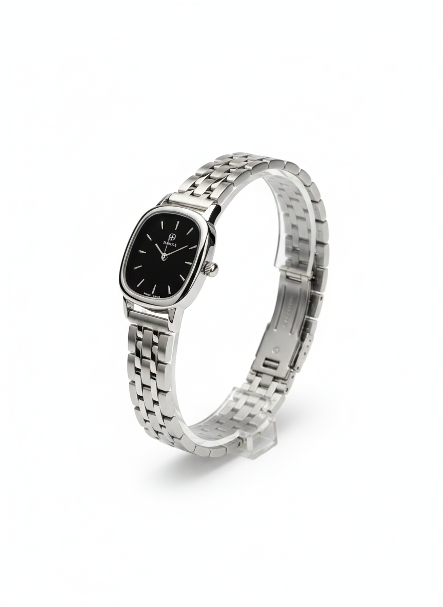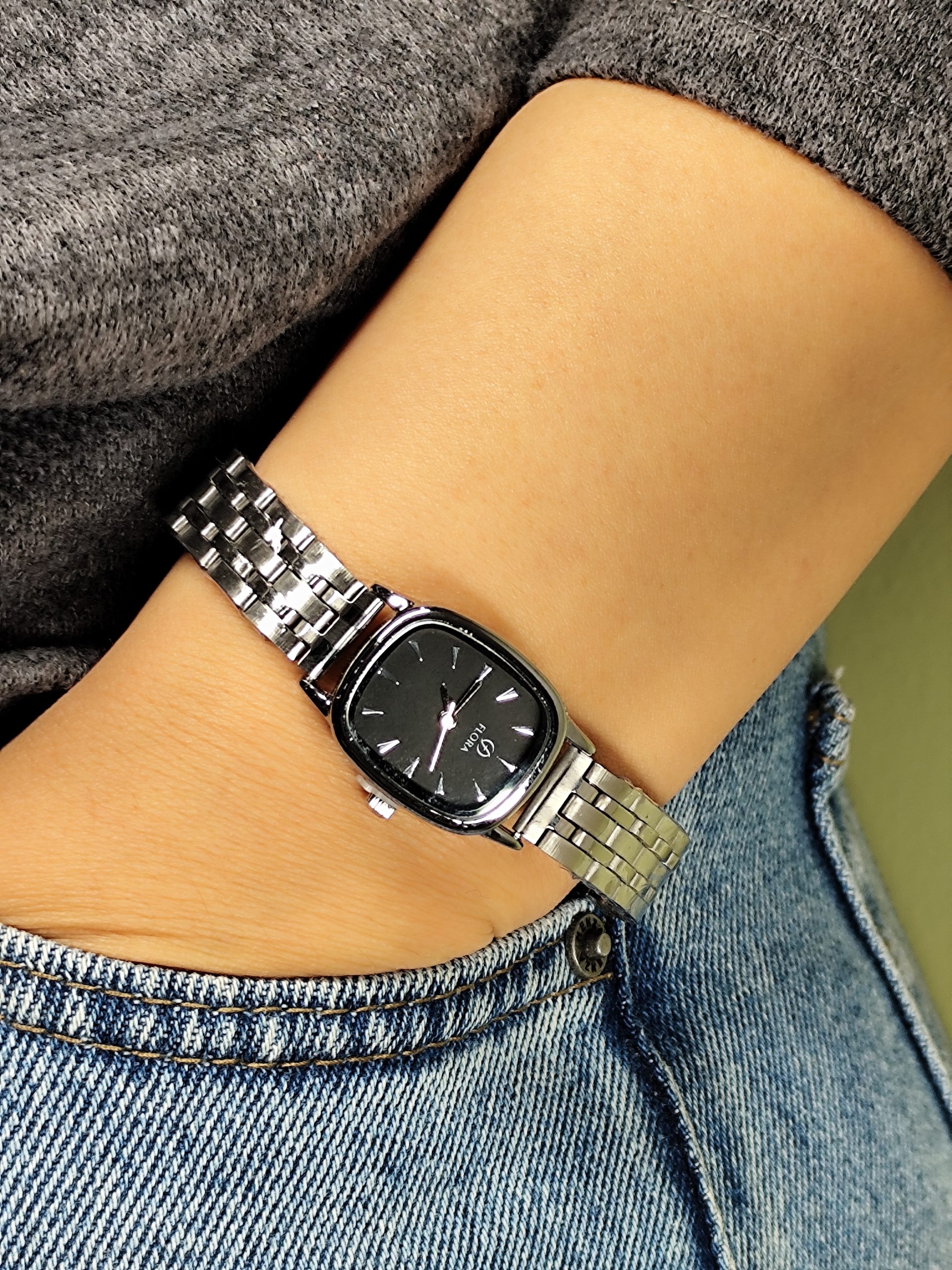 ساعت فلورا با طراحی خاص و صفحه مستطیل و بند فلزی براق، یک انتخابی هوشمندانه و کلاسیک برای استایل‌های رسمی و روزمره است. فرم خاص صفحه در کنار ظرافت بند فلزی، جلوه‌ای لوکس و چشم‌نواز به این مدل داده و آن را به گزینه‌ای مناسب برای خانم‌هایی با سلیقه و کلاسیک‌پسند و مینیمال تبدیل کرده است. این ساعت با طراحی ساده اما متفاوت، به‌راحتی با انواع استایل‌ها ست می‌شود و می‌تواند انتخابی عالی برای استفاده روزانه یا هدیه باشد.