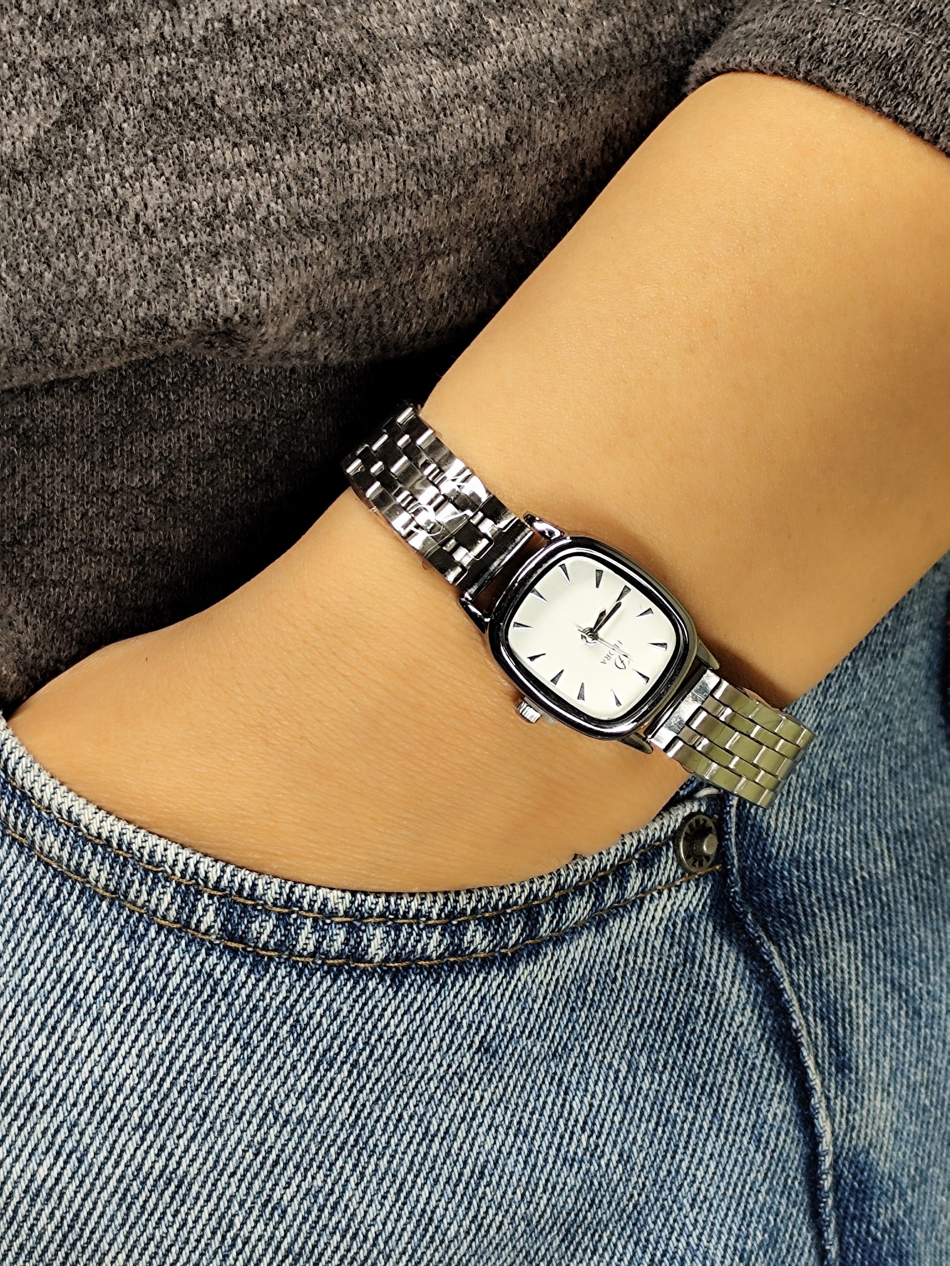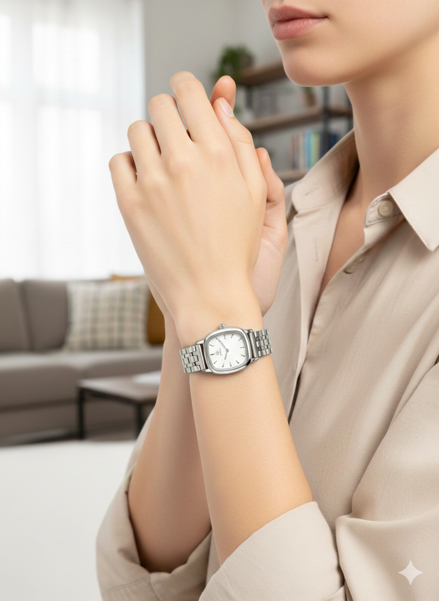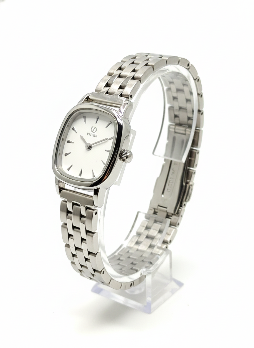 ساعت فلورا با طراحی خاص و صفحه مستطیل و بند فلزی براق، یک انتخابی هوشمندانه و کلاسیک برای استایل‌های رسمی و روزمره است. فرم خاص صفحه در کنار ظرافت بند فلزی، جلوه‌ای لوکس و چشم‌نواز به این مدل داده و آن را به گزینه‌ای مناسب برای خانم‌هایی با سلیقه و کلاسیک‌پسند و مینیمال تبدیل کرده است. این ساعت با طراحی ساده اما متفاوت، به‌راحتی با انواع استایل‌ها ست می‌شود و می‌تواند انتخابی عالی برای استفاده روزانه یا هدیه باشد.